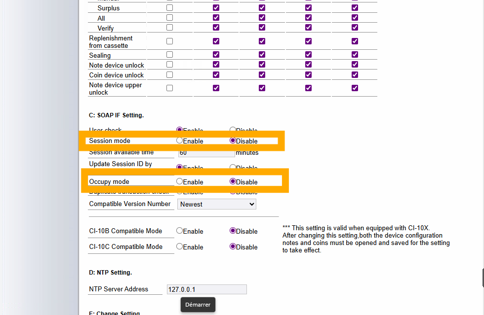 Dans la section Glory, activez l’intégration en cochant la case, et saisir l’adresse IP du monnayeur.