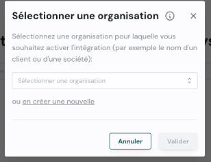 Une fenêtre « Sélectionner une organisation » s'affiche :