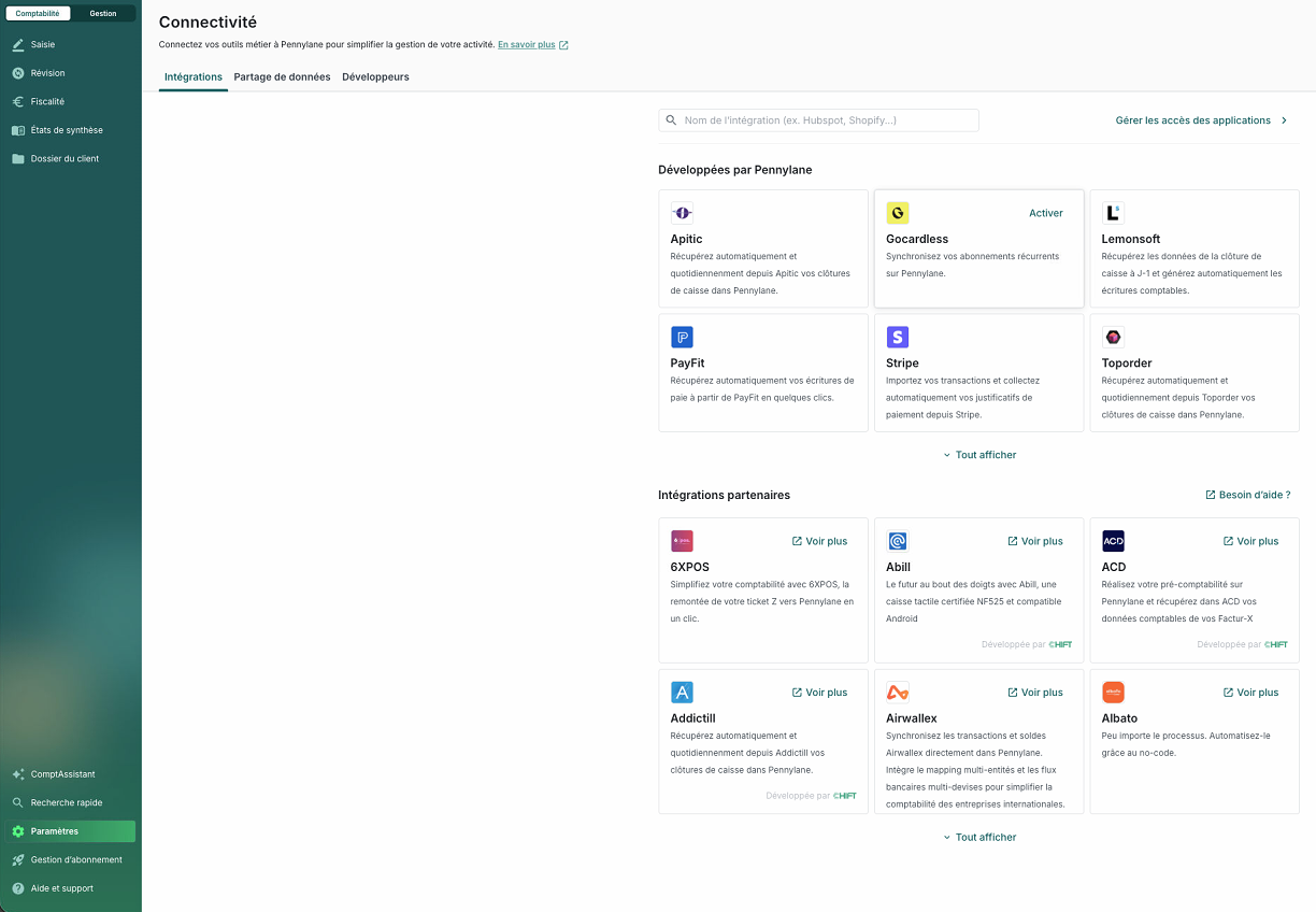 Étape 1 — Lancer l'intégration depuis Pennylane