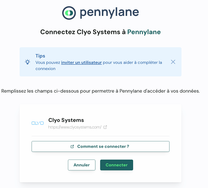 - Cliquez sur Connecter sur la fiche Clyo Systems