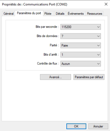On ouvre les propriétés du port et on change la configuration comme ci-dessous.