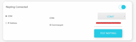 Remplir ensuite les paramètres de cette manière ( avec l'ID commerçant fourni par notre service commercial et le port COM relevé à l'étape précédente )
