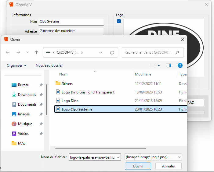 Pour importer un logo, cliquer sur l'image et le sélectionner dans l'explorateur.