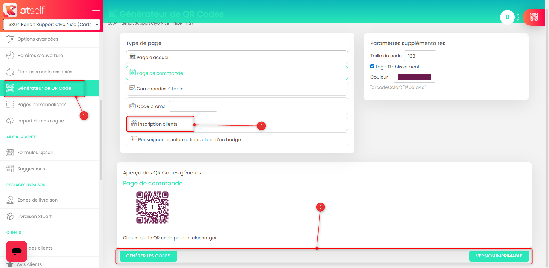 Astuce : le QR Code peut être affiché en magasin (près du comptoir) et/ou imprimé sur un support pour les commandes à emporter.