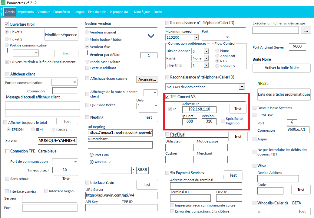 - TPE Ingenico connecté au même réseau que la caisse