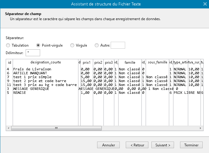 Selectionner la séparation par point-virgule et cliquer sur suivant à nouveau.