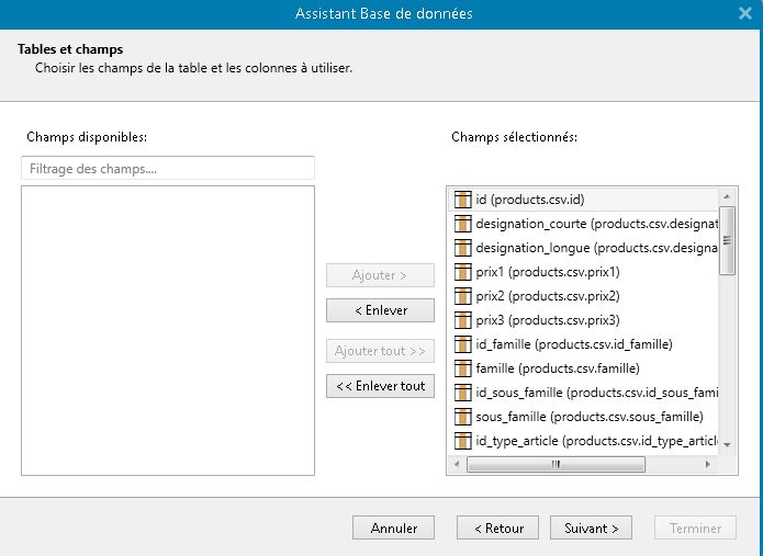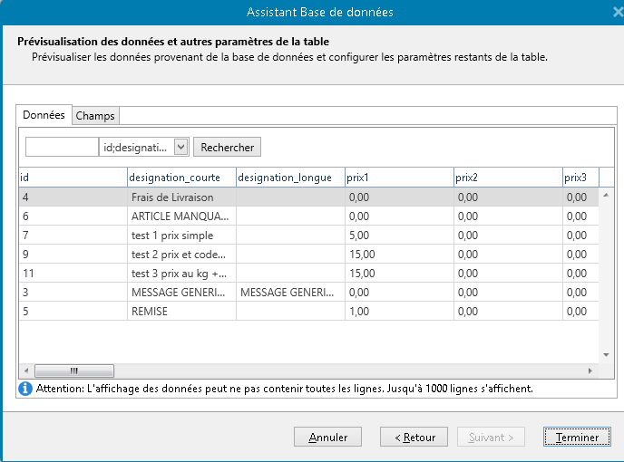 ATTENTION ! Si la page ci-dessous n'apparait pas lors de l'ouverture de votre fichier Product.csv, rendez-vous dans le dossier Clyo et supprimez le fichier Product.SCH Une fois fait, réimportez le fichier product.csv dasn Zebra designer.