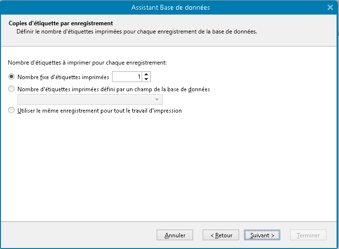 Cocher "ne créer aucun objet de l'étiquette" et Suivant.