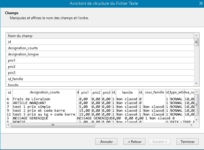 - Une liste d'article caisse à jour.