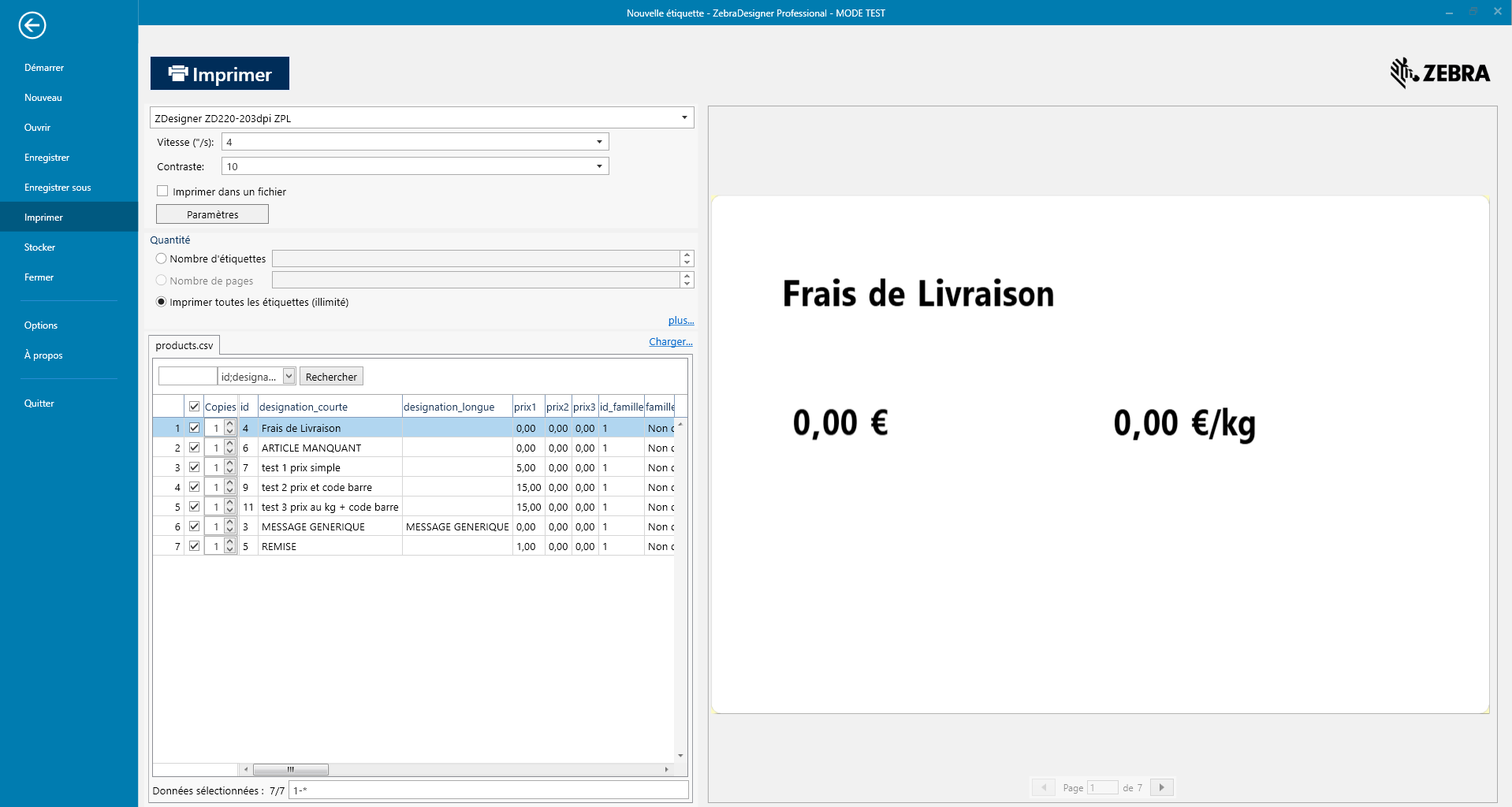 Pour imprimer vos étiquette, aller dasn fichier puis Imprimer.