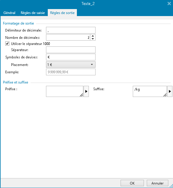 Et dans le Suffixe, entrer la valeur /kg. Appliquer