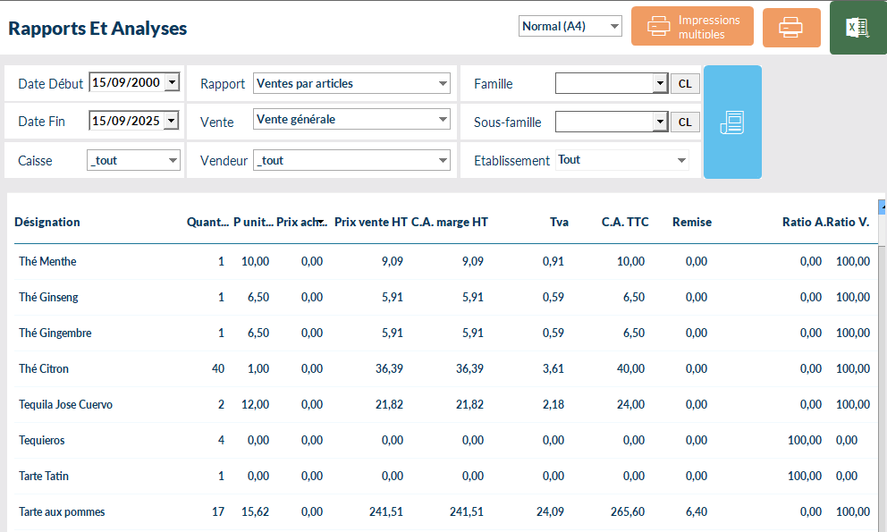 C.A. Marge HT correspond au taux de marge (% sur prix d’achat) : Formule : (Marge / Prix d’achat) × 100