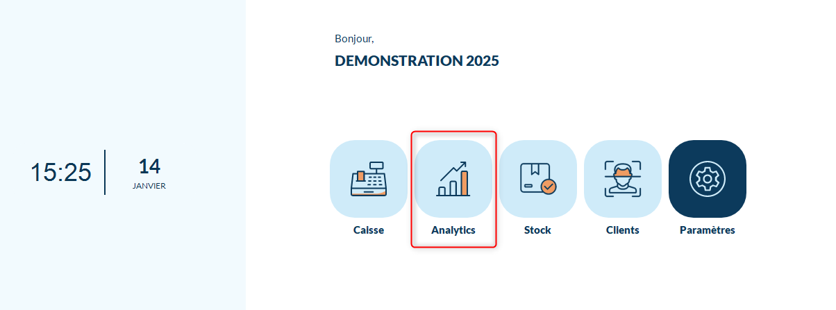 Après avoir lancé votre application Clyo depuis votre caisse, sélectionnez l'outil "Analytics":