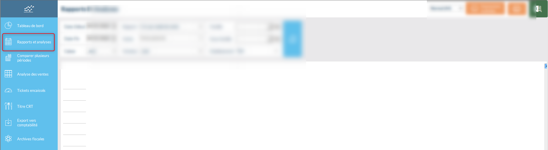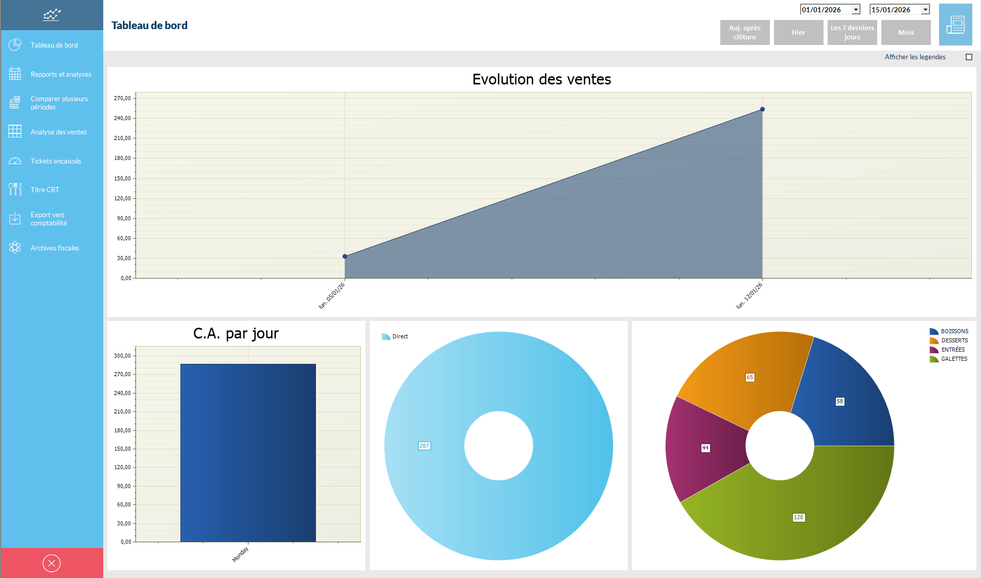 C'est ici que vous aurez accès aux données concernant votre établissement. (chiffre d'affaire, évolution des ventes, rapport d'encaissement...)