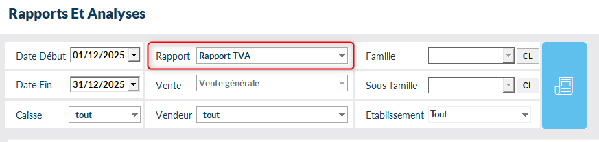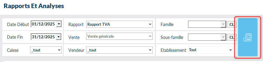 Certains filtres peuvent êtres utilisés dans certains rapports pour affiner votre requête, notamment "Famille", "Vendeur".