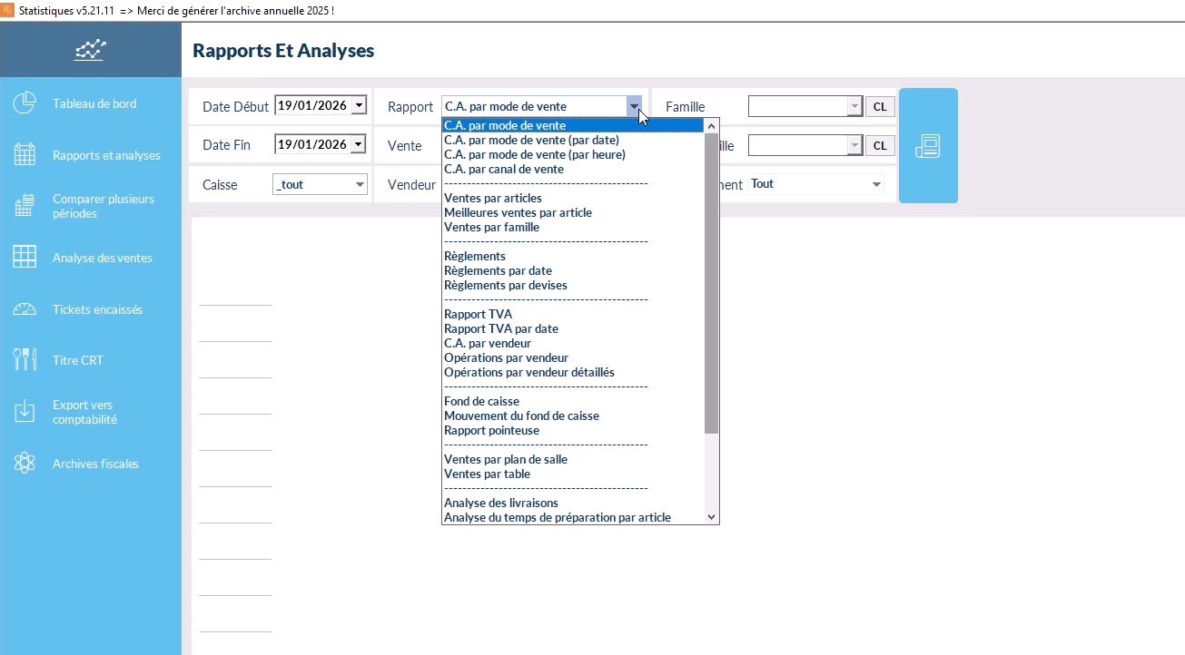 IV. Générer d'autres rapports (Chiffre d'affaires, règlements, etc.)