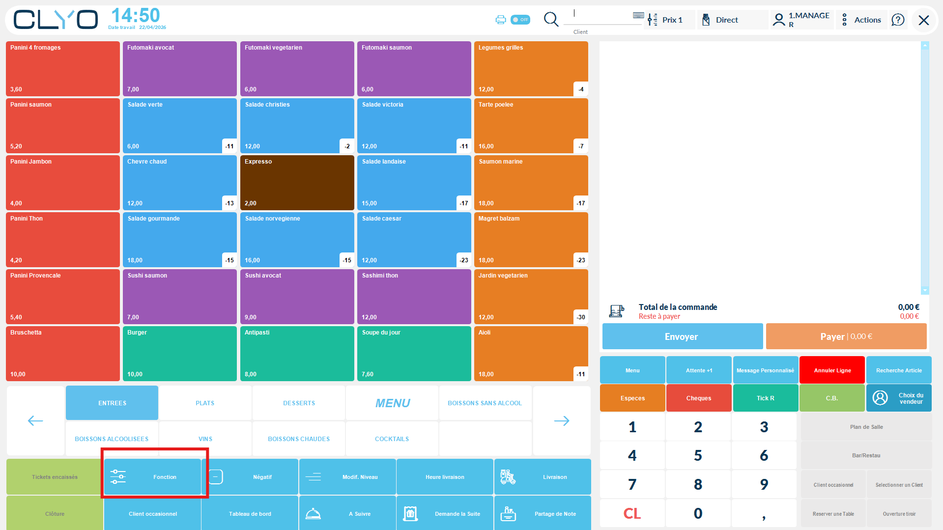 Cette journée de travail s’ouvre lorsque l’on lance la caisse dans CLYO pour la première fois de la journée.